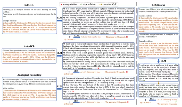 尽管思维链(Chain-of-Thought)提示方法显著增强了大模型的推理能力,但其仍存在局限性:一方面需要大量人工干预,另一方面效果仍存在提升空间。当前最新的一些研究致力于改进这些问题,但这些方法要么依赖外部数据,并且无法彻底消除人工的参与,要么难以有效引导大模型生成高质量示例提示。为此,受人类渐进式学习的习惯启发,我们提出一种新型自动推理提示方法LBS3。具体而言,LBS3首先引导大模型回忆与目标问题相关的、由易到难的关联问题;随后采用渐进策略,从易到难的问题中衍生出示例提示,指导大模型解决高难度问题,从而确保生成高质量的解决方案。为了验证LBS3的有效性,我们基于多种开源与闭源LLMs上开展推理任务。实验表明,使用LBS3后,模型能够显著提升推理benchmark的指标。