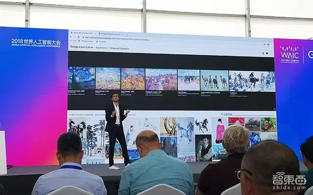 除了猜画小歌之外,谷歌艺术与文化实验室项目主管Pierre Caessa还现场展示了谷歌的AI+艺术展示,谷歌和全球博物馆合作,将众多艺术作品数字化,展示给不能到场的全球观众。