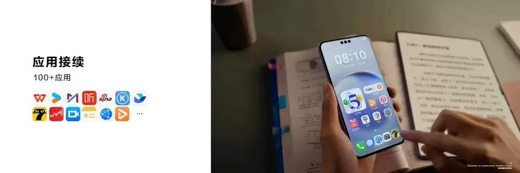 • 超100款App支持应用接续,涵盖钉钉、淘宝、哔哩哔哩、喜马拉雅等常用应用。在全新的HarmonyOS 6上,应用接续功能可以覆盖更多设备,酷狗音乐等均可以在多设备之间无缝接力播放完一首歌,一段旋律穿越全场景。