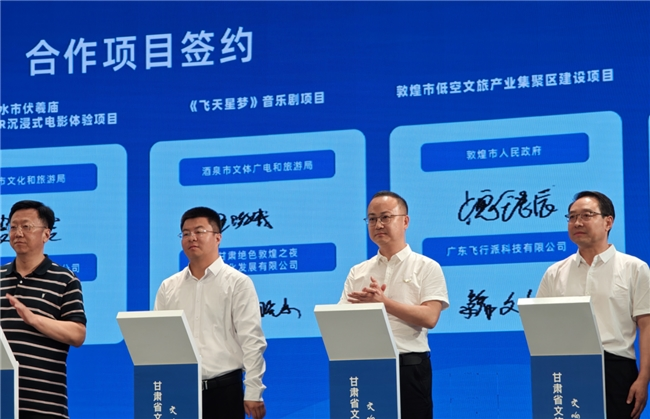 飞行派科技首席品牌官魏文伯与敦煌市政府党组成员、副市长魏铭辰签署合作协议