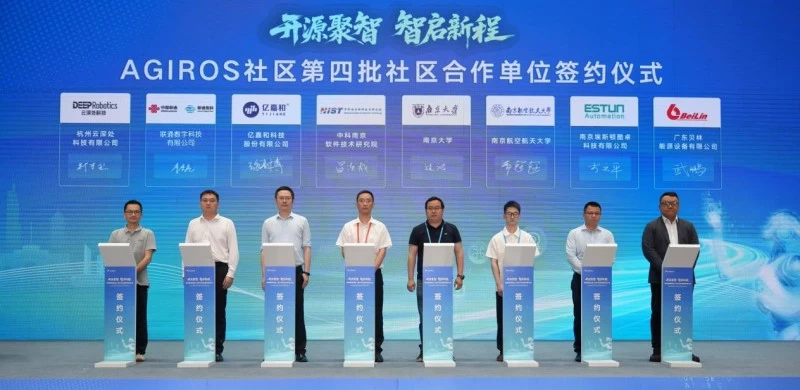 AGIROS开源社区迎来第四次合作伙伴签约,南京大学、南京航空航天大学、中科南京软件技术研究院、联通数字科技有限公司、埃斯顿酷卓科技有限公司、亿嘉和科技股份有限公司、杭州云深处科技有限公司、广东贝林能源设备有限公司等八家产、学、研、用单位签约共建。
