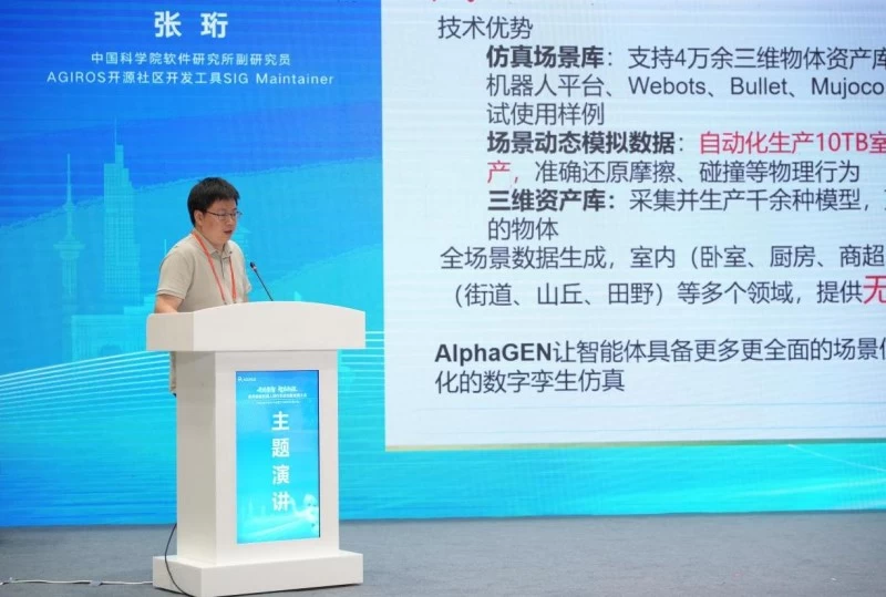 AGIROS社区开发工具SIG Maintainer,中国科学院软件研究所副研究员张珩介绍了全场景智能机器人仿真平台Alpha Platform的关键技术。平台包含具身智能仿真开发系统AlphaX