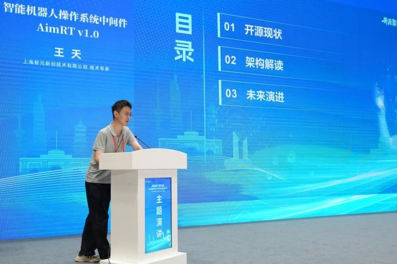 上海智元新创技术有限公司技术专家王天分享了《智能机器人操作系统中间件AimRT v1.0》。作为AGIROS社区Framework-SIG 的Maintainer,王天带来了AimRT v1.0正式版的解读。阐述了作为智能机器人操作系统中间件的开源现状与架构亮点。同时表达了持续扩充生态、提升开发效率,维护共建社区的展望。