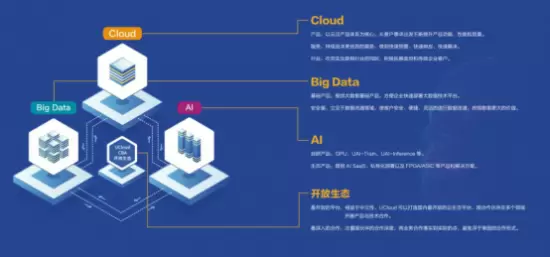 目前,AI企业仍以搭建自身硬件设施及数据资源为主要发展渠道,在设备构建和资源共享方面发展缓慢,存在硬件搭设方面成本过高,数据资源匮乏,应用面狭窄等一系列突出问题。2017年初,UCloud(优刻得)提出了“CBA”(Cloud,Bigdata,AI)三位一体发展战略,并发布了UAI(人工智能)系列产品,包含高性价比 GPU、UAI-Train、UAI-Inference 等AI产品,构筑起一站式AI全服务,帮助AI企业解决上述“痛点”。
