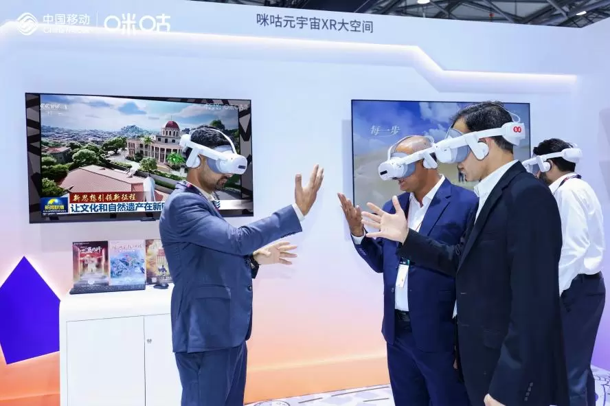 此外,咪咕公司推出的XR大空间品牌「咪咕未来空间」也亮相现场,聚焦中国移动营业厅及商业化场景,通过「内容汇聚 + 产品部署 + 运营赋能」的标准化服务体系,实现 XR 大空间场景的快速落地与规模化应用。目前,咪咕与敦煌研究院联合出品的《敦煌奇旅》XR 项目已完成多城落地 —— 在北京、广东广州、江苏泰州、四川眉山营业厅实现试运营,以 1:1 复刻的莫高窟第 220 窟等沉浸内容,构建起科技与文化交融的体验矩阵。