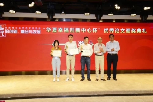 本次学术交流活动现场,专家对50余篇全国各人工智能领域的博士后投稿论文进行了评选。在全国博管办、北京人社局以及人工智能领域专家们见证下,对其中11篇优秀论文颁发了“华夏幸福创新中心杯”的荣誉证书与奖杯。