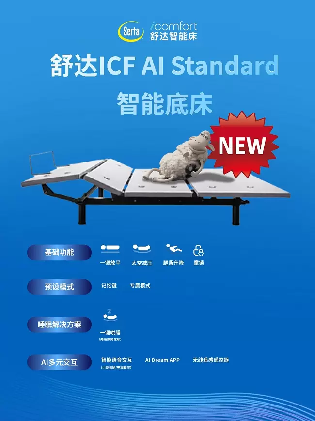 好睡眠是生活的充电站,而一张优秀的智能床,则是开启好睡眠的金钥匙。舒达 ICF AI 系列 4款智能底床已就位,诚邀你前往线下门店,亲身感受智能睡眠的魅力,开启高品质睡眠生活。