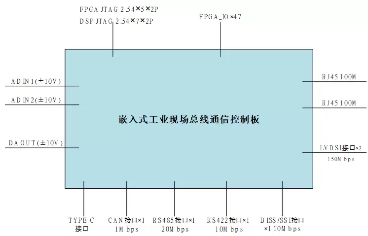 图 嵌入式工业现场总线通信控制板对外接口图