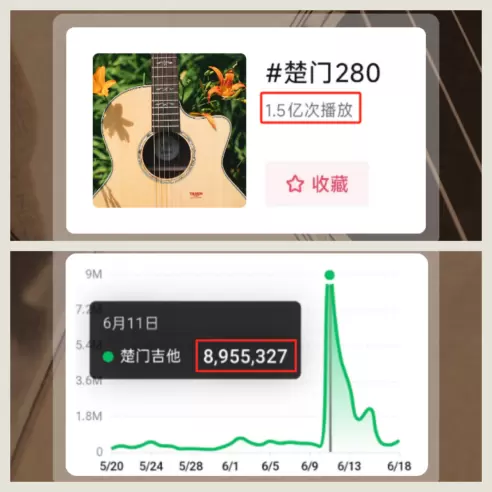 楚门280上线首月,抖音单平台的话题热度就已超过“1.5亿”,迅速成为行业焦点与玩家们的热议对象!同时新品发布也助力了楚门吉他品牌热度,微信搜索指数暴涨近“900万”,跃居国产吉他圈品牌内的“断层第一”!