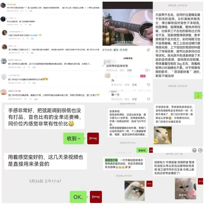 “玫瑰木面单搅局者”“音色颜值双顶流”“梦中情琴”...等琴友自发评价和达人视频作品的推广传播,是对楚门280在市场和专业上的双重认可,“两千元价位最强单板”的口号实至名归。