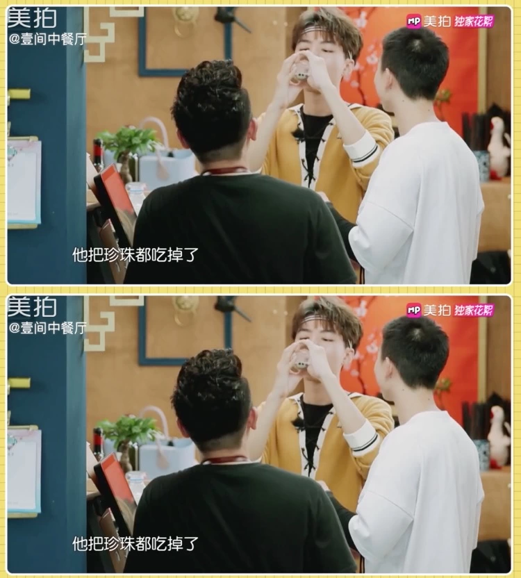 其余时间里小凯不仅随时随地唱歌,还露出了吃货本性,走到哪吃到哪儿,甚至把奶茶喝掉的同时也不忘了把珍珠都消灭光。