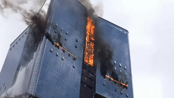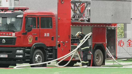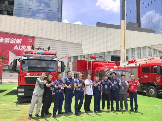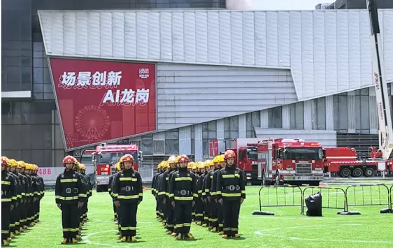 此次演习模拟深圳市某151米超高层建筑15层因电气线路故障引发火灾,火势迅速蔓延至34层并形成多点燃烧,大量人员被困,由于传统举高类消防车受限于100米的作业高度极限,难以应对超高层建筑火情,情况万分危急。