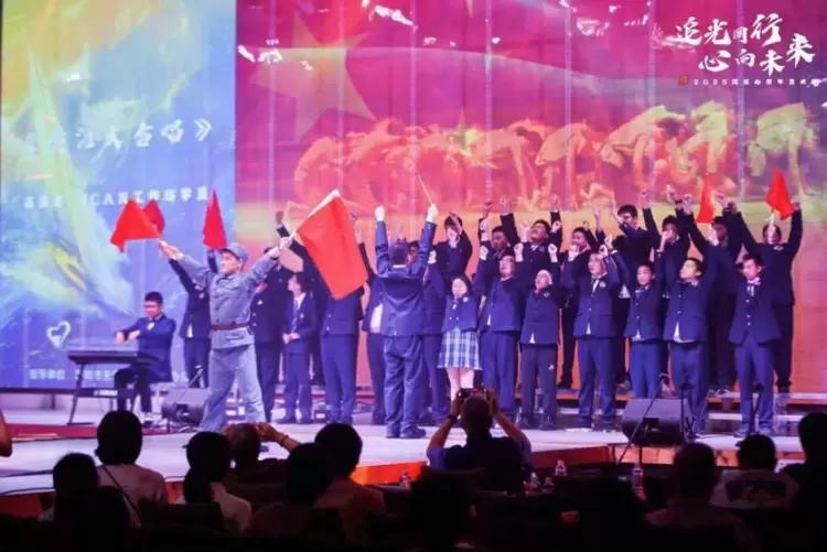双选会余温未散,艺术节文艺汇演以三大篇章掀起高潮。诗朗诵《我们是这样一群青年》铿锵有力,舞龙舞狮《旗开得胜》点燃全场热情,国粹《说唱脸谱》变脸绝技惊艳四座。澳门心青年带来的热舞《Pretty Pretty Girls》活力四射,虹光 Band 演唱的《中国人》《让爱同行》引发万人大合唱。最动人的当属父亲节特别献礼《父亲》,学员们情难自抑的真挚演绎,让现场观众热泪盈眶。