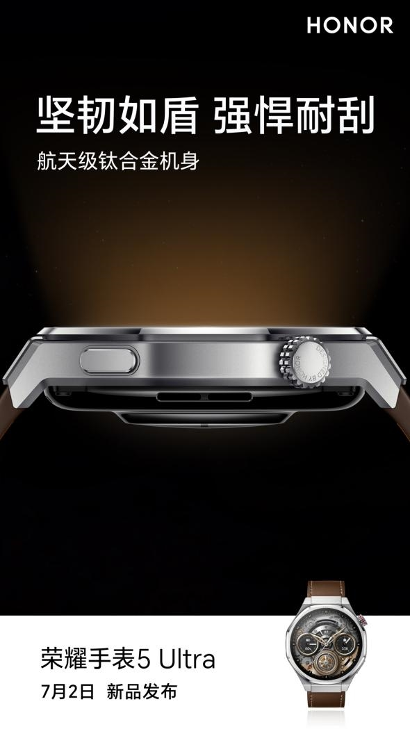 6月25日,荣耀官方微博发布“AI健康专家”荣耀手表5 Ultra 系列海报,引发全网关注。荣耀手表5 Ultra采用与航天器同源的五级钛合金材质,并辅以高超的工艺技术,为用户带来颜值不俗,舒适耐用的穿戴体验。目前,荣耀手表5 Ultra 已在荣耀商城、天猫以及京东旗舰店等渠道开启预售,更有多重首发专属福利,产品将在7月2日与荣耀Magic V5、MagicBook Art 14、MagicPad 3、荣耀Earbuds开放式耳机等产品一起发布,感兴趣的朋友不要错过。