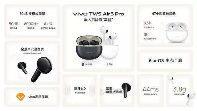 vivo TWS Air3 Pro正式发布:超强降噪 “半入耳降噪苹替”