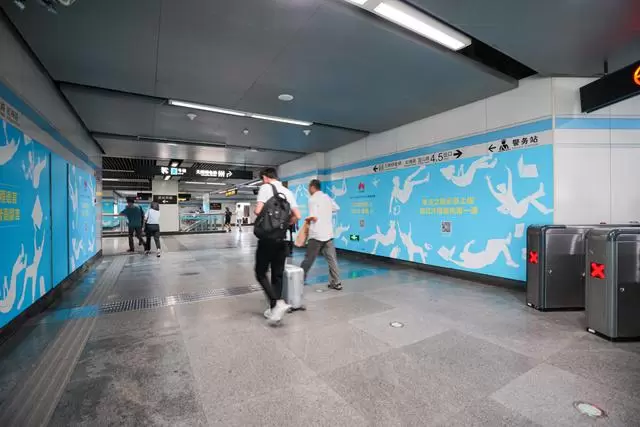 C114在上海9号线漕河泾开发区站内看到,从通道到站台,已经在贴墙、灯箱广告的覆盖下焕然一新。无论是蓝底白图黄字的干净主基调,还是“做一个代码诗人,每一行都美得优雅”、“敢和IT大佬谈薪,不敢和老爸老妈谈心”、“擅长的技术,不再值钱;从头学习AI,不停向前”这样一句句走心的文案,都显得那么的与众不同。而在杭州萧山机场,华为云广告同样吸引眼球。广告画面中,一辆华为“智能号”高铁在三张蓝色巨幅广告中延伸,它满载充满“AI理想”的开发者,驶向即将在10月10日开幕的2018华为全联接大会。