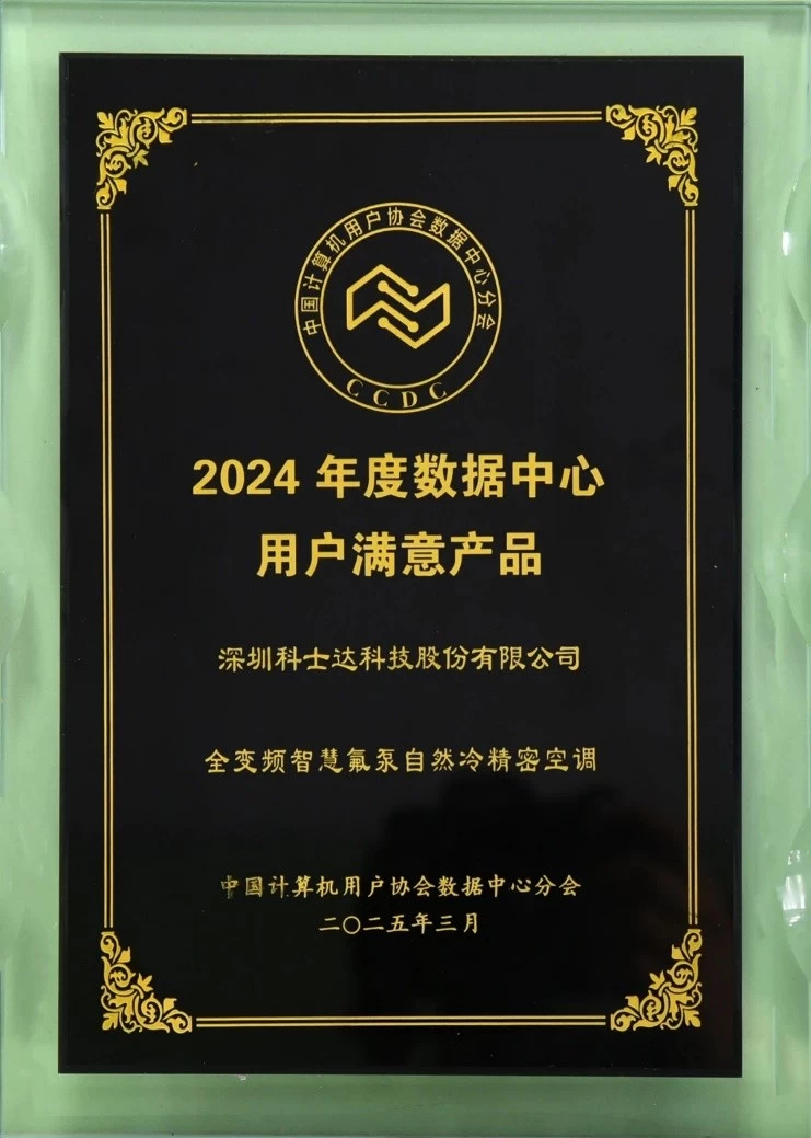 近日,科士达自主研发的全变频智慧氟泵自然冷精密空调凭借优异的节能表现,荣获由中国计算机用户协会数据中心分会(CCDC)颁发的“2024年度数据中心用户满意产品奖”。这一权威奖项的获得,标志着科士达在数据中心绿色节能领域的技术实力与产品可靠性再次获得行业高度认可。