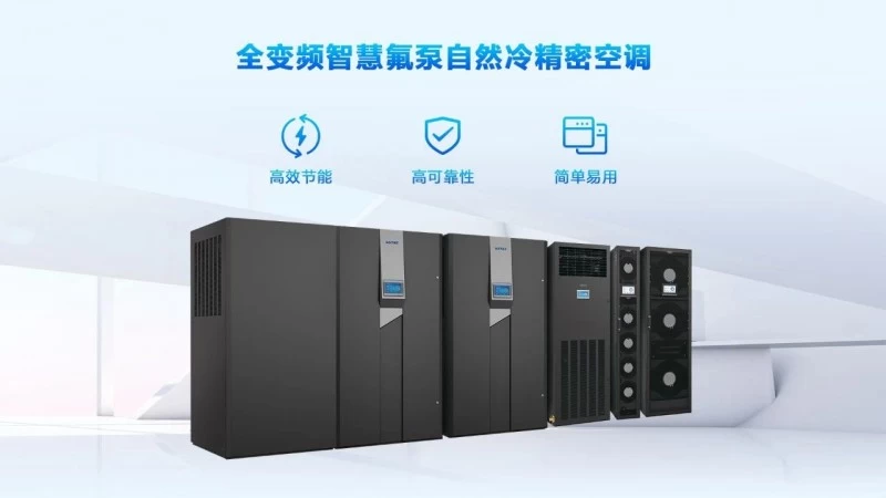 科士达全变频智慧氟泵自然冷系列节能精密空调巧妙融合了自然冷源与柔性机械制冷,通过AI算法自动计算负载大小,制冷量匹配IT负载10%~100%精确输出,确保机组高效稳定运行;采用先进可靠的控制器,随室外环境温度变化实时调节制冷方式,最大限度利用自然冷源,使空调始终运行在最佳能效点实现高效节能。其CLF(冷却负荷系数)低至0.11,且WUE(水资源利用率)约为0,显著降低了能耗的同时不消耗水资源,可应用于各种类型的数据中心、通信机房等场所。