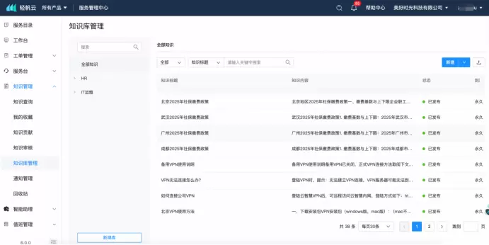 轻帆云ITSM智能知识库,助力企业运营创新与服务价值提升