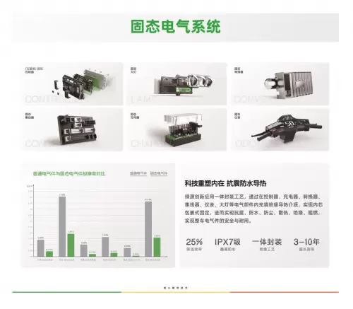 在电能管理环节,绿源低功耗固态系统展现出精密的“管家”本色。该系统采用6效合1高效电控,核心电气件全固态填充,一体封装工艺,抗震、防尘、防水、绝缘、阻燃、散热,六效合一,降低热损耗,提升运行效率。同时前置高效域运行区间,全新升级电控算法,精细化电量分配和输出效率,高效域前置,最大限度均衡能耗与动力。让每一度的电量都能得到充分利用,提升电池使用效率,延长了电池使用寿命,为用户提供了更持久、更稳定的动力支持。