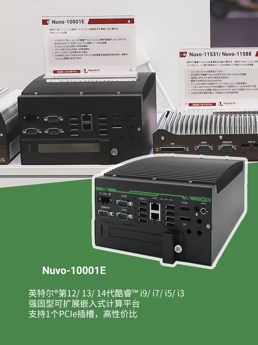 展台上还展出了支持第14代英特尔酷睿处理器的强固型嵌入式计算平台Nuvo-10001系列,兼具紧凑的机箱尺寸和强大的算力。Nuvo-10001系列支持各类I/O 接口和单槽PCIe 扩展能力,可安装各种用于自动化的扩展卡,包括NVIDIA GPU卡,以提升智慧工厂中人工智能视觉检测应用的性能。值得一提的是,Nuvo-10001可实现灵活的客制化需求,同时拥有高性价比,是智慧工厂应用的理想选择。