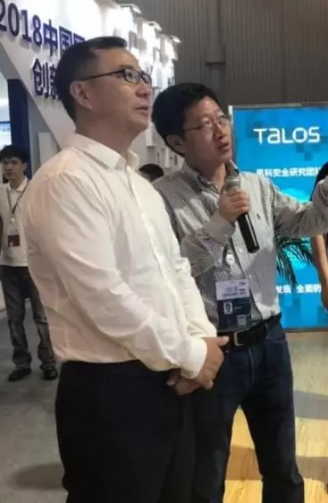 中央网络安全和信息化委员会办公室副主任、国家互联网信息办公室副主任刘烈宏参观思科展台,思科大中华区资深副总裁魏松斌陪同讲解