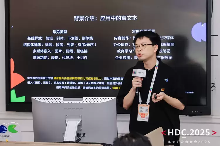 飞书鸿蒙架构师史庭盛在《渲染无界,字字入生:RTV全场景文本渲染引擎》主题演讲中提到,富文本能显著提升内容的视觉吸引力和信息表达力,RichTextVista (RTV) 作为一个所有涉及图文的业务场景都能使用的轻量级富文本组件,能够使无数用户获得更舒适的阅读体验。他期待有更多的伙伴接入RTV,共同定义文本渲染在鸿蒙生态的未来!