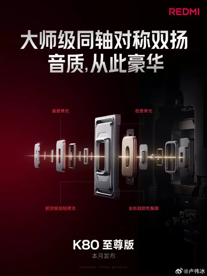 值得一提的是,在声学和触感方面,K80至尊版还带来了行业首发的“至尊双感系统”。搭载了「大师级同轴对称双扬」,同样由瑞声科技独供,是微型扬声器中唯一同轴双单元扬声器。其最大特性在于,可以突破传统扬声器“低频下潜不足、高频细节缺失”的挑战,实现全频段音质提升。