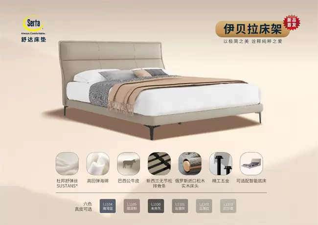 舒达「伊贝拉」床架,以爱为引,用细节都诉说着对品质的执着追求,让每一次倚靠都感受到无声的守护,以极简之美构筑生活本真,让床,不止于承托,更在于陪伴。舒达新品「伊贝拉」床架已全面上线,舒达在全国600多个城市拥有2000多家线下门店,诚邀您亲临品鉴,感受红点设计大师的匠心之作,体验由「伊贝拉」所诠释的睡眠空间新美学与惬意舒适。