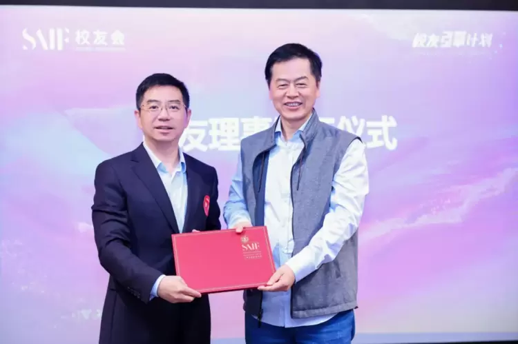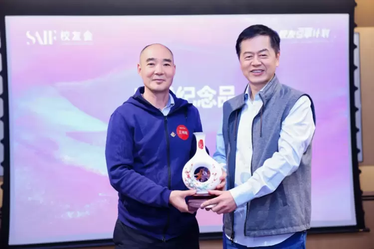 SAIF校友会联席会长王伟明校友(GES3期)代表校友会赠送交大纪念品。