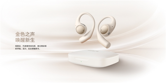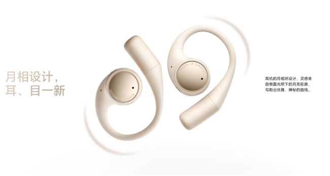 荣耀Earbuds开放式耳机采用月相设计,灵感源自月影的优雅曲线,巧妙地将科技与艺术融合在一起,打造出佩戴即惊艳的视觉体验。荣耀Earbuds开放式耳机拥有极昼金和极夜黑两种配色。极昼金寓意着新的起点与无限可能,极夜黑,则代表着深邃的夜空,激发着人们探索与创造的勇气。前卫的设计理念和配色哲学,让荣耀Earbuds开放式耳机成为一件兼具科技感与艺术感的时尚单品,为生活增添一抹独特的色彩。