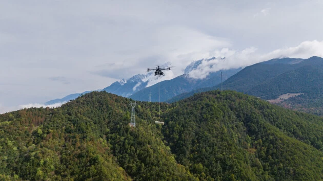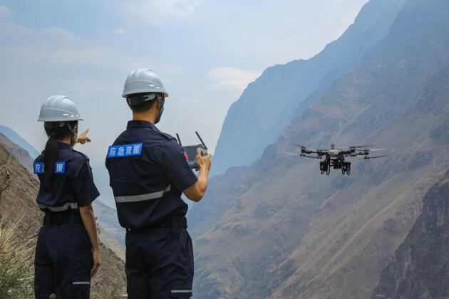 如今,大疆全新运载无人机凭借其卓越的载重性能、行业领先的稳定性与智能化水平,正在重新定义各领域的运输方式。在电力行业,DJIFC100在上一代产品基础上,实现了运输物料类型从绝缘端子、间隔棒等拓展到避雷针等大型物件的空中吊运,为高山输电线路的建设和运维提供了更高效的空中运输解决方案。在工程建设领域,DJIFC100的运输能力已从传统的水泥、砂石拓展至中小型工程机械,单次可完成十几公里外的山林运输任务,彻底改变了依赖人工搬运的低效作业模式。在应急救援场景中,当灾害导致道路中断时,DJIFC100凭借全向感知系统和旗舰级空吊系统,可在复杂环境下实现全自动卸货,让救援物资精准直达人力难以抵达的区域,为抢险救灾争取黄金时间,同时最大限度保障救援人员安全。
