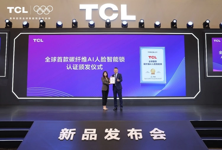 近期,TCL获得由知名权威咨询机构CIC灼识授予的“全球首款碳纤维AI人脸智能锁”市场地位确认证书!