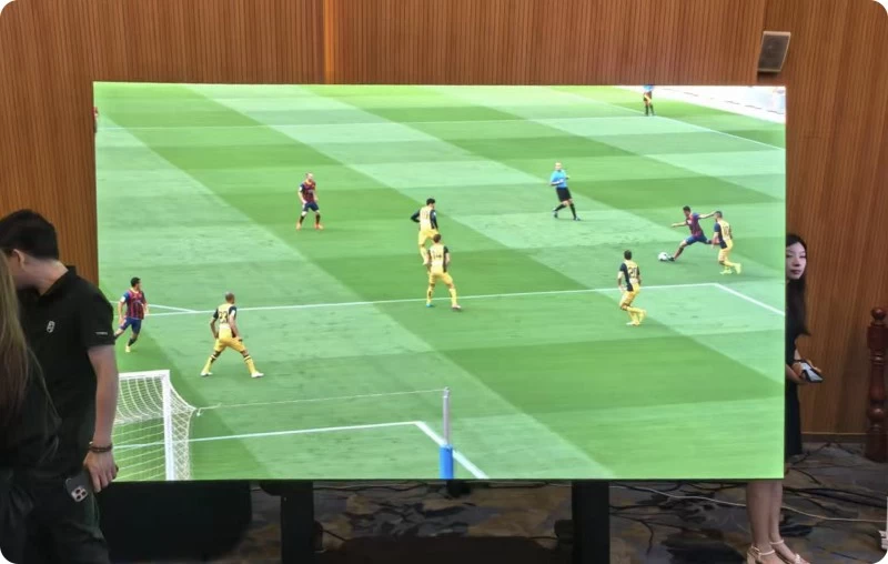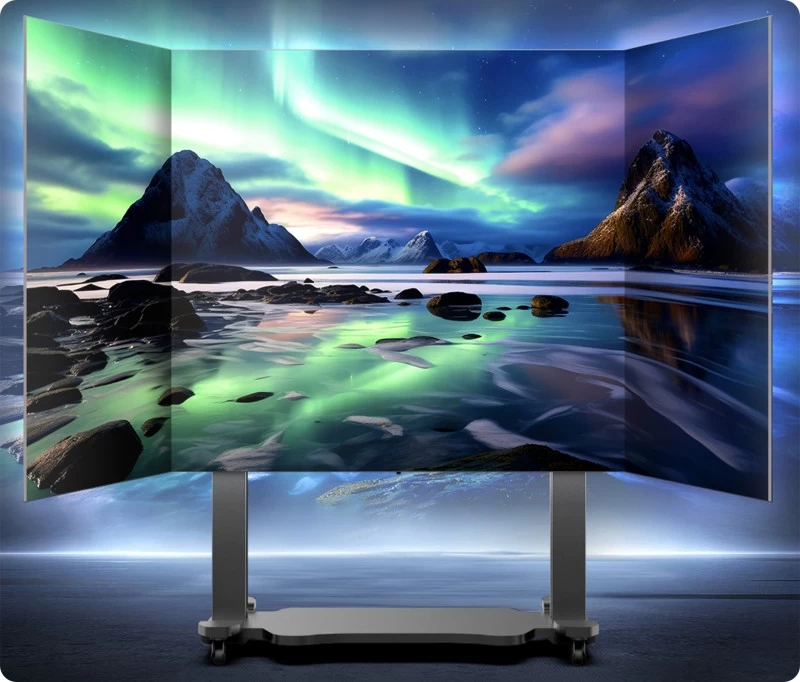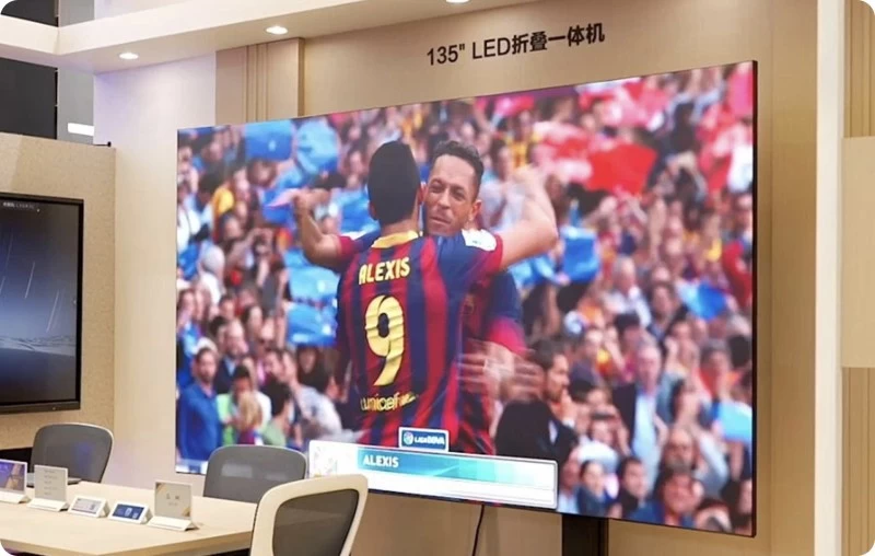创新的模块化折叠设计是显著亮点。通过精密的机械结构和连接技术,这款135英寸的庞然大物实现了便捷的折叠运输和快速安装,彻底解决了超大尺寸LED屏幕的安装难题,让震撼的135寸巨幕能够轻松进驻各种高端空间。