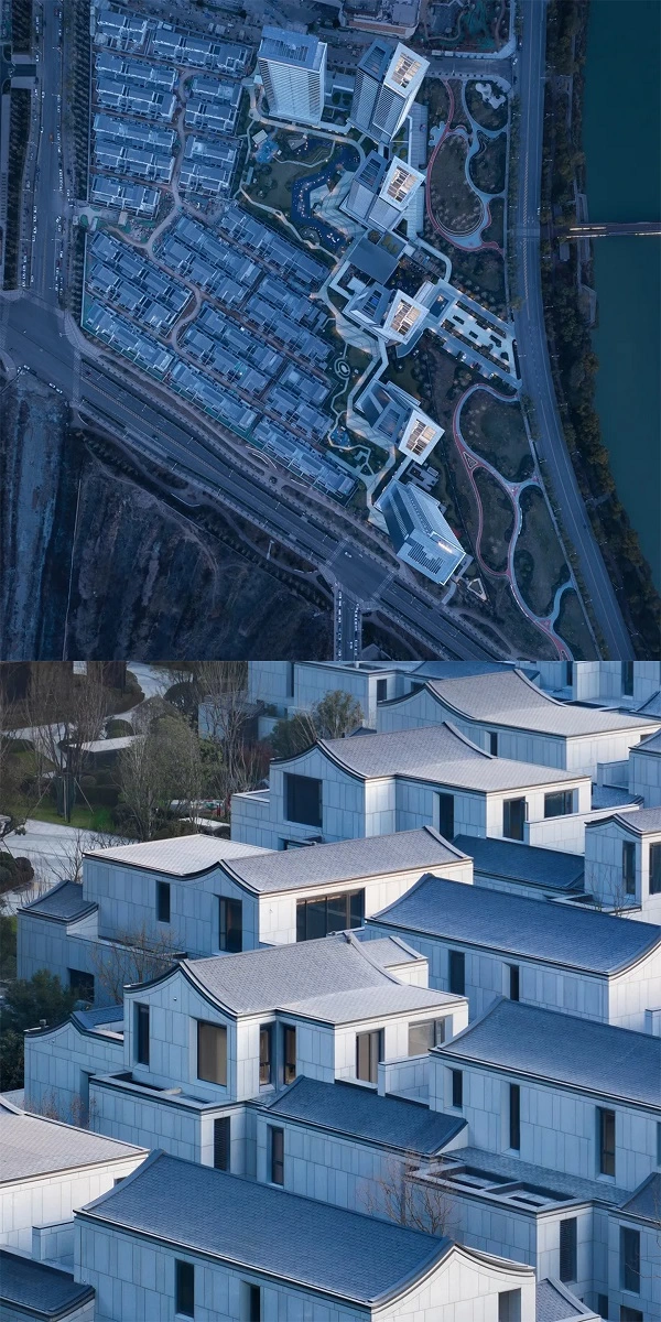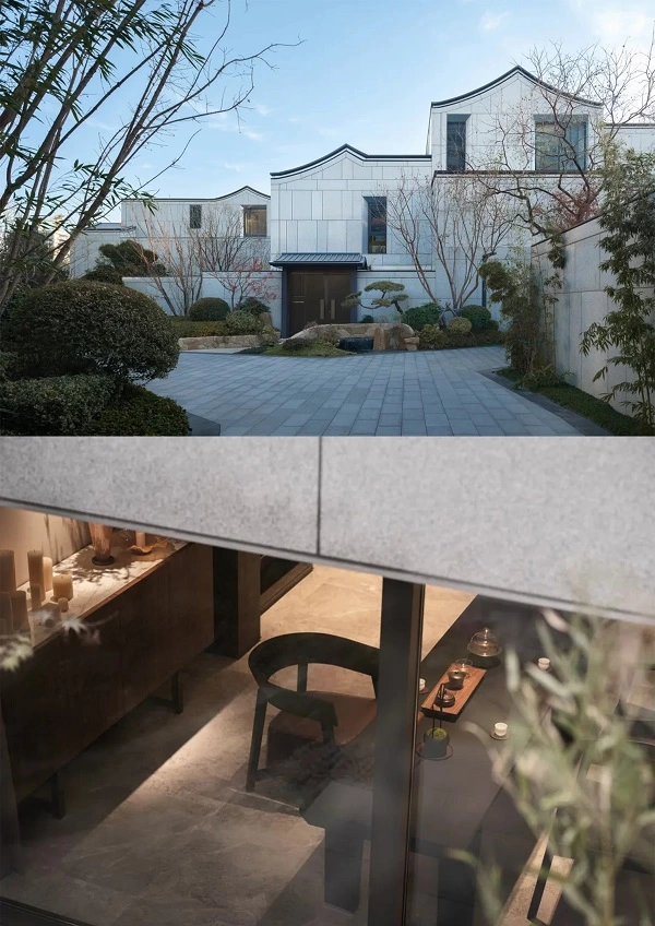 作为古都顶级豪宅的代表,源邸壹号高层以“西北之舟”为意象,体块咬合、色彩界分,勾勒出简洁挺括的现代轮廓;低层合院别墅则化繁为简,用现代材质重新诠释北方民居的质朴神韵,于简约平和、含蓄内敛中透出传承与创新。