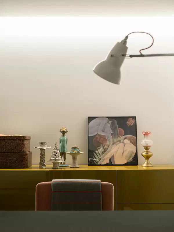 空间与产品,两个不同的设计类别,但在空间中却有着明确的同一性,别墅一层中John Pawson 系列夏荷石长桌,或许可以概括这种同一性:中国传统美学的弦外之音和现代设计的凝练抽象结合在一起,不偏不倚,节制又诗意。极简与充沛细节的谋和是手法层面的呈现,而内里却是高级的趣味和东、西方设计观念的完美融合。