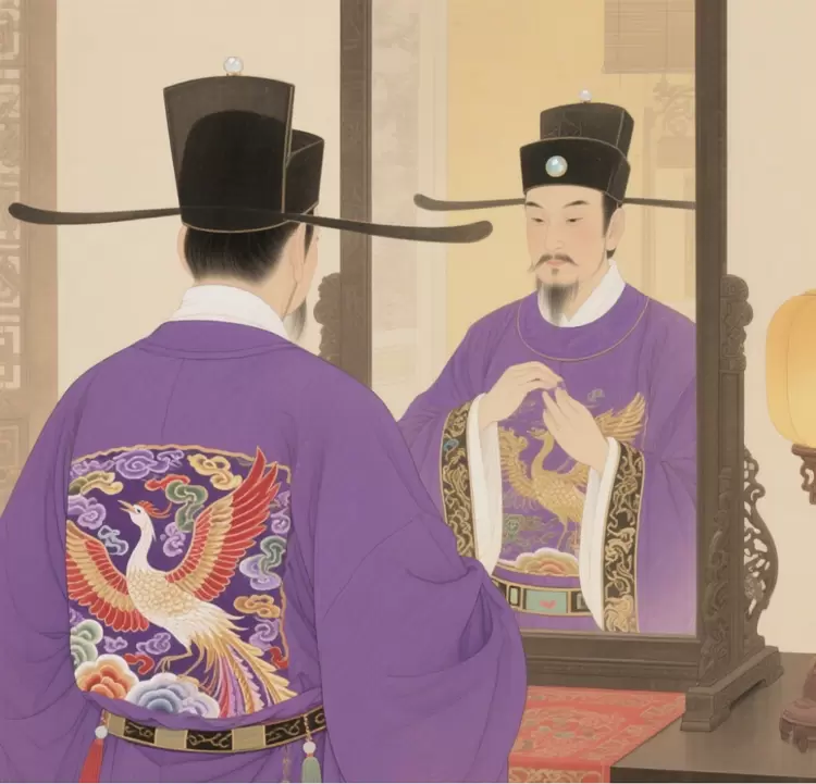 “三公紫”是中国传统色之一,盛唐时期只有官职最高的太尉、司徒、司空才能称为“三公”,位列三公方能穿着紫色官服,“三公紫”寓意高贵。