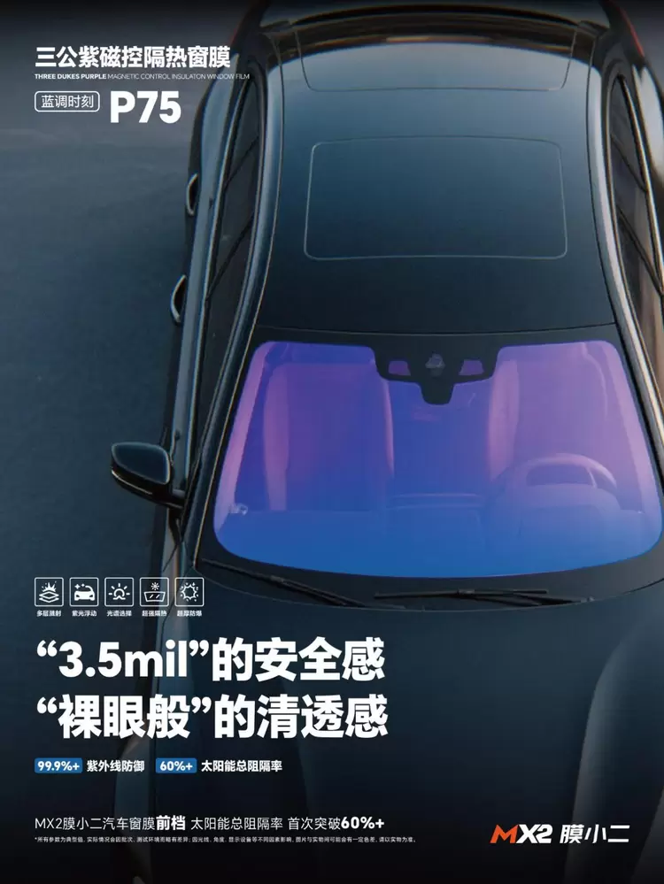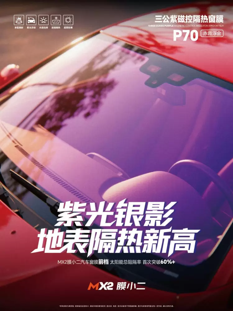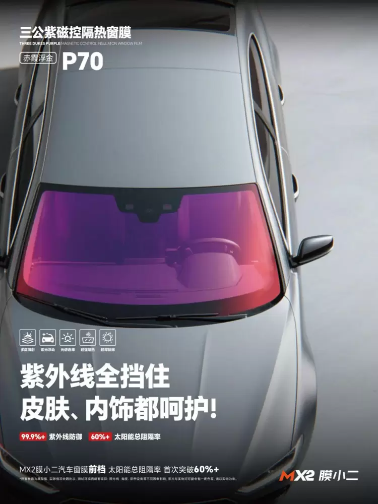 隆重首发!MX2膜小二【三公紫】磁控隔热窗膜——国产品牌推动汽车隔热膜太阳能总阻隔率步入60%+时代!