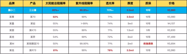 (三公紫与国内外顶尖窗膜参数及价格对比一览)