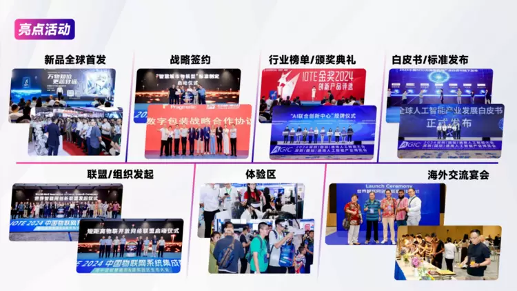 发布系列研究成果和榜单:展会不仅包括“IOT金奖”、“AI骑士榜单”、“大湾区人工智能重点企业TOP50”等榜单,更有各大《中国物联网产业创新白皮书》、《全球人工智能产业发展白皮书》以及系列标准首发,展示展会的行业凝聚力和号召力,更是为参与企业搭建了品牌与市场影响力双重提升。