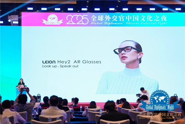 6月28日,在北京国贸大酒店举行的“2025全球外交官中国文化之夜”上,来自170余个国家的外交官、国际商会代表与知名企业家齐聚一堂,共赏中国科技文化与世界交融的盛宴。作为活动的战略合作伙伴与官方指定AR眼镜,亮亮视野推出的消费级翻译眼镜Leion Hey2成为全场关注的焦点,凭借“连续、及时、抬头”的沉浸式体验,为国际嘉宾之间的跨语言沟通打破了“语言壁垒”。