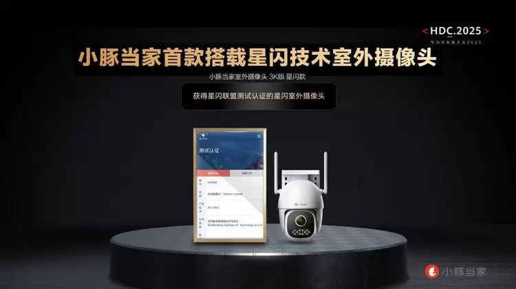 在HDC 2025“HarmonyOS Connect 新模式 新体验 智领生态未来”专题论坛上,小豚当家研发副总刘康发表了题为《摄像头适配星闪连接》的精彩演讲,并现场演示了搭载星闪技术的创新产品。