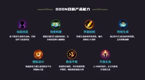 在AI篇章,恺英网络展示了其人工智能技术的深度应用与创新产品。专为游戏行业打造的《SOON》 AI全流程开发平台率先亮相,该平台深度整合多模态大模型能力,宣称能实现从美术资产生成到代码部署全流程的自动化操作,将传统游戏开发周期从数月大幅缩短至小时级。目前,《SOON》已获比高集团、横店资本等战略投资,预计7月30日开放下载。