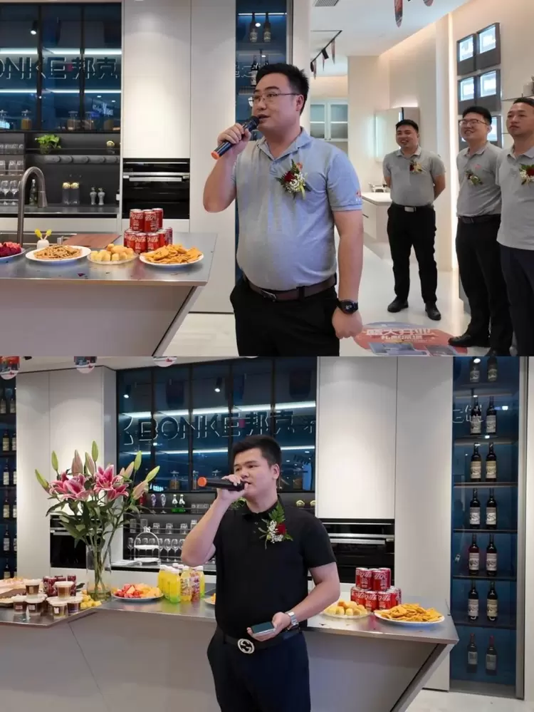 活动现场,融家广场市场部 龚总、邦克全屋定制新零售总监王兆腾分别发表致辞,他们向到场嘉宾、合作伙伴致以诚挚的欢迎与感谢,并共同表示:“邦克不锈钢全屋定制深圳福田店的成功开业,为邦克品牌发展注入了新活力,也为消费者开启了沉浸式一站购物新体验,未来,邦克深圳福田店将始终秉持“诚信经营、顾客至上”的理念,不断优化购物环境,为消费者带来更多物超所值的产品及更优质的服务” 。