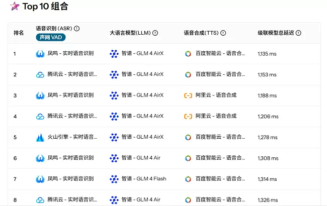 ASR+LLM+TTS 延迟性能排行榜