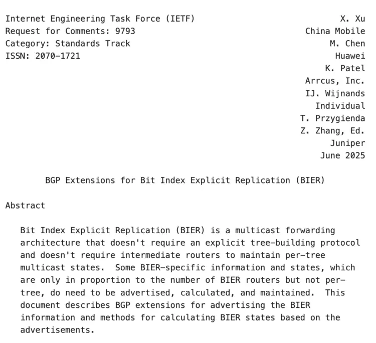近日,移动云主导制定的IETF国际标准RFC9793《BGPExtensionsforBitIndexExplicitReplication(BIER)》正式发布,该标准针对主流的MoE(MixtureofExperts)架构AI大模型的专家并行All-to-All通信瓶颈问题提供了高效解决方案,为AI大模型的高效训练和推理提供了坚实的保障。这一突破性成果标志着移动云的技术创新实力获国际权威认可,彰显了中国在全球互联网标准体系建设中的重要话语权。