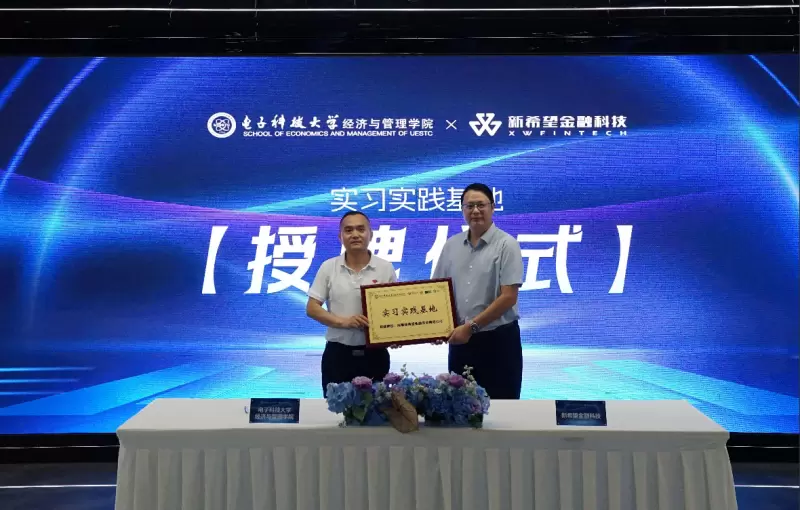 本次战略合作着眼于长远发展,旨在构建深度融合的创新生态,围绕共筑科研高地、贯通人才培养链、共享资源生态与课程共建等多个方面的合作,为金融科技行业发展注入创新力量。仪式现场,电子科技大学经济与管理学院授予新希望金融科技“实习实践基地”的牌匾。