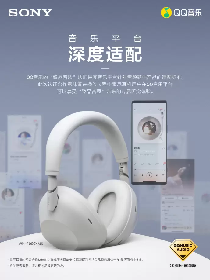 - 专业认证!索尼WH-1000XM6获QQ音乐臻品音质认证
