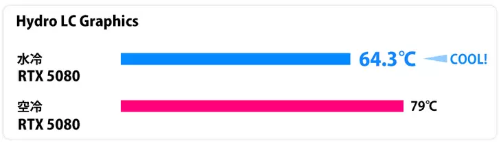 规格参数显示,RTX 5080 Hydro LC相比普通版RTX 5080可实现更高的平均运行频率。根据SyCom官方数据,该卡在满载状态下能稳定维持2,820 MHz的核心频率,较创始人版的2,620 MHz加速频率高出约7%。更值得注意的是,Hydro LC显卡在保持超频状态的同时,温度控制表现优异:满载温度仅64.9摄氏度,且运行过程几乎静音。