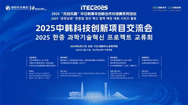 科技无国界,创新正当时!6月27日,一场跨越山海的双向奔赴在北京朝阳精彩上演——汇聚首尔前沿科技与北京创新基因的“2025中韩科技创新项目交流会”在望京留创园ITEC创新中心活力启幕!